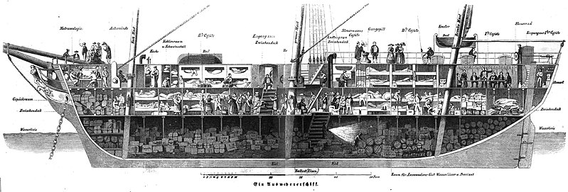 הצְהָרִים של תאי הנוסעים, הסלון וכו' באוניית הנוסעים הטרנס-אוקיאנית Great Britain (הושקה ב־1843). צילום: MontaNito. מקור: wikimedia commons.