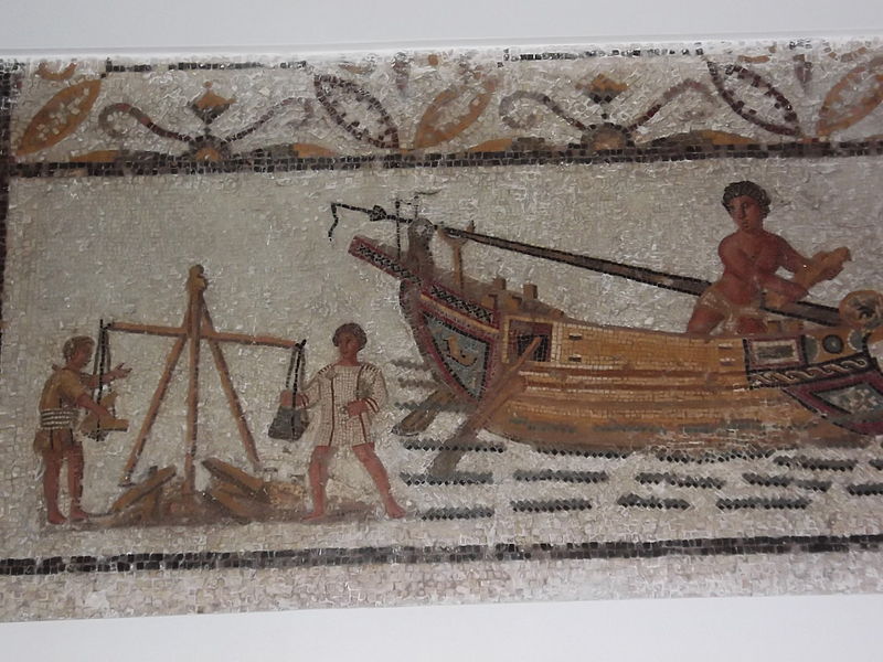 איל ניגוח מחודד של דו-טורית פיניקית, תבליט בארמון סנחריב בנינווה, 700-692 לפנה"ס. מקור: wikimedia commons