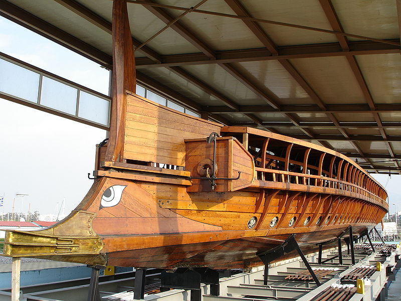 "אולימפיאס", רפליקה (1987) של תלת-חתרית אתונאית מן המאה ה-5 לפנה"ס. נמל פיראוס, 2020. צילום: George E. Koronaios. מקור: wikimedia commonsסידור החותרים בתלת-חתרית (טריארה). שרטוט: Thomas Ihle. מקור: wikimedia commons"אולימפיאס", רפליקה (1987) של תלת־חתרית אתונאית. האוזנית נמצאת מלפנים למלברית, ועליה תלוי העוגן. הפתחים העגולים הם פתחי המשוטים של חותרי המפלס התחתון. מלפנים: איל ניגוח מברונזה.צילום: Χρήστης. מקור: wikimedia commons.