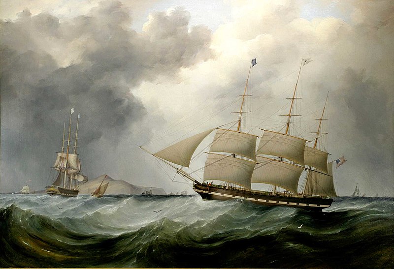 Rishanglys, אוניית קיטור עם מפרשי עזר,מניפה אות דגל מקודקוד הגף האחורי: "אני זקוק לנתב", ציור מאת אדוארד אדם, 1877. מקור: wikimedia commons