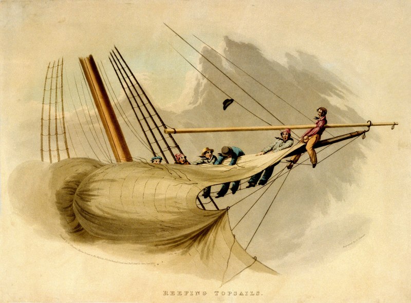 צמצום מפרש עילי, ציור מאת ויליאם ג'ון האגינס, 1832. מקור: wikimedia commons