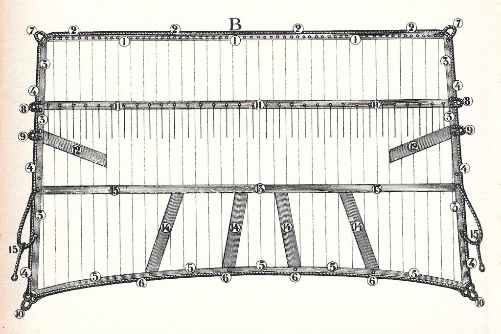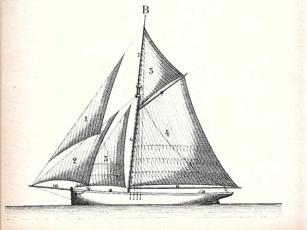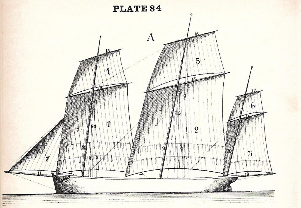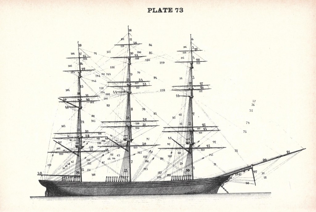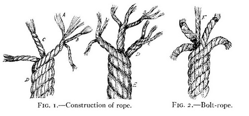 שרוכים לקשירת מפרשים אורכיים. מקור: A. Ansted, A Dictionary of Sea Terms, 1898. עותק סרוק: internet archive.