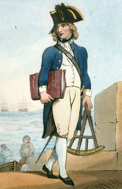פוסט קפטן בצי המלכותי הבריטי, ציור מאת ג'ון אוגוסטוס אטקינסון, 1807. מקור: wikimedia commons