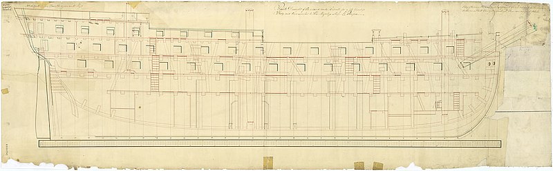 תוכנית סיפון הערסלים של אה"מ "בדפורד" (1775), אוניית 74-תותחים מדרגה שלישית. מאוסף המוזיאון הימי הלאומי, גריניץ'. מקור: wikimedia commons.