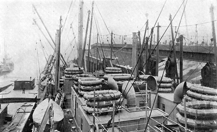 רפסודות הצלה וסירות הצלה על סיפונה של USS Panaman, שנה: 1919. מקור: wikimedia commons