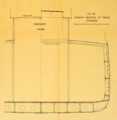 חתך רוחב של אוניית תובה למטען בתפזורת. מקור: T. Walton, Steel Ships: their construction and maintenance, 1901