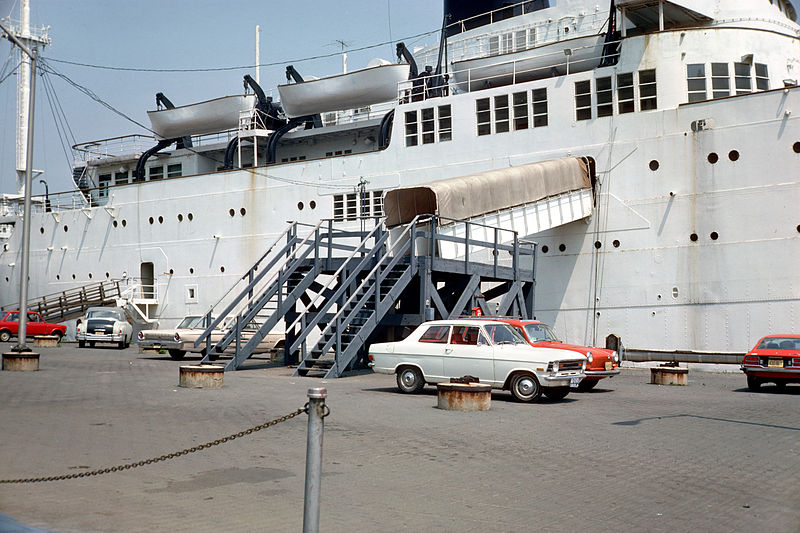 בָּבֵי הכניסה לסיפונים A ו־B של אוניית הנוסעים SS Stevens. צילום: Bill Walendzinski, 1975. מקור: wikimedia commons