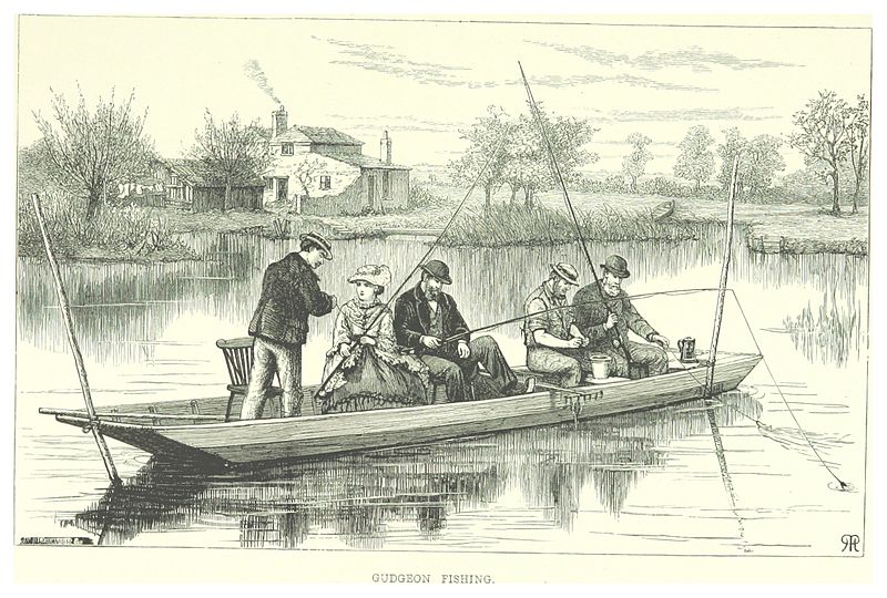 דיג בפונטית במעלה התמזה. איור בספר H.R. Robertson, Life on the Upper Thames, 1875. המקור: wikimedia commons