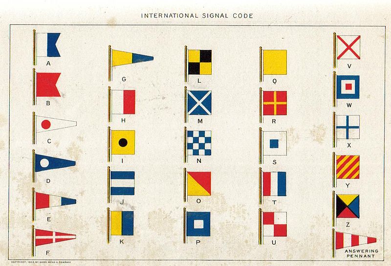 דגלי הקוד הבינלאומי לאיתות. מקור: New International Encyclopedia, 1902. העתק: wikimedia commons