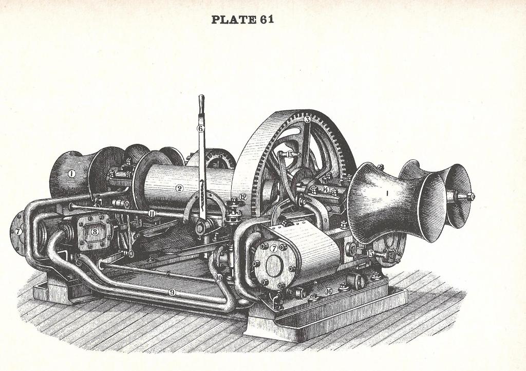 טלגרף למכונה ולכננת העוגן על הגשר הפתוח של אוניית הנוסעים "אקוויטניה". מקור: wikimedia commons