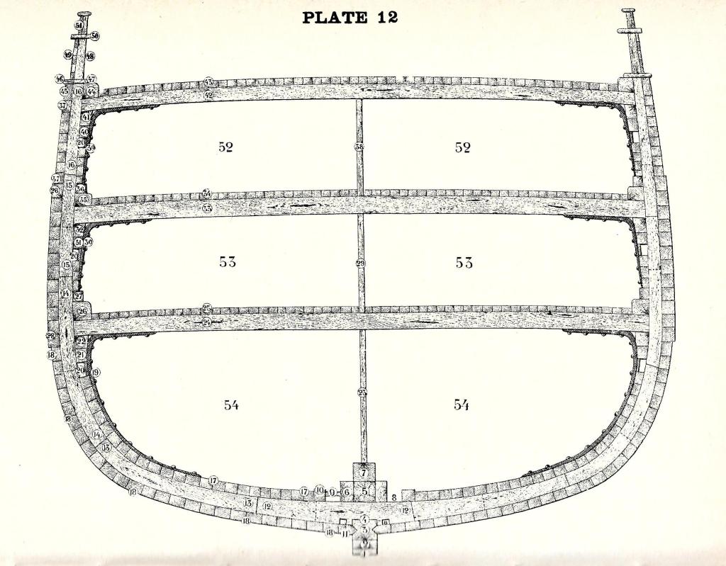 צלעות הגוף של אוניית עץ. 1. שדרית. 2. צלעית תחתונה. 3. צלעית ראשונה. 4. צלעית שנייה. 5. צלעית שלישית, 6. צלעית רביעית. 7. צלעית חמישית. 8. צלעית עליונה. 9. חלקי עץ. 10. חיבור בשגם עגול. מקור: Paasch, Illustrated Dictionary of the Marine, 1890. העתק: wikimedia commons.