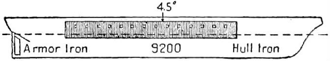 השטח המקווקו: צור התותחים של אה"מ "ווֹריוֹר", 1860. איור בספר מ-1905. מקור: wikimedia commons.