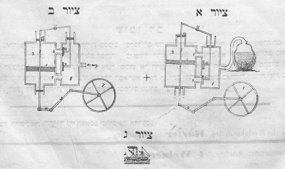 כמו ברכב הברזל ככה גם לאנית הקיטור יש פארור גדול מלא מים ותחתיו תבער אש למען יהפכו המים לקיטור וכל שאר הכלים לשניהם אחד המה! אפס להאניה עוד בהאופן (7) רחת (שויפעל) אחת או שתים, וגם לפעמים ירבה מספרים לפי ערך כובד האניה – ומחוץ יתראה לעינינו כהציור ג'.