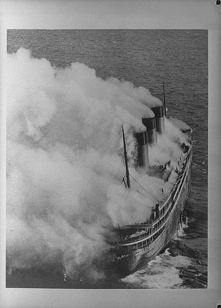 ב־3.30 הודיעו לי על אש שפרצה בתא של המחלקה הראשונה. אתמול בבוקר היינו ליד גירנסי. חשבתי כי הצלחנו להתגבר על ההתפרצות, אבל מעשה הוכינו ע"י הלכּה המתלקחת בנקל. הלהבה התפשטה מתא לתא ועד מהרה בערה כל המחלקה הראשונה. חדרו של האלחוטאי הפך כמעט מיד לגוש אש ועשן, אך בכל זאת הצליח האלחוטאי להפליט קריאה אחת „הצילו“, והקריאה התקבלה בהאבר.