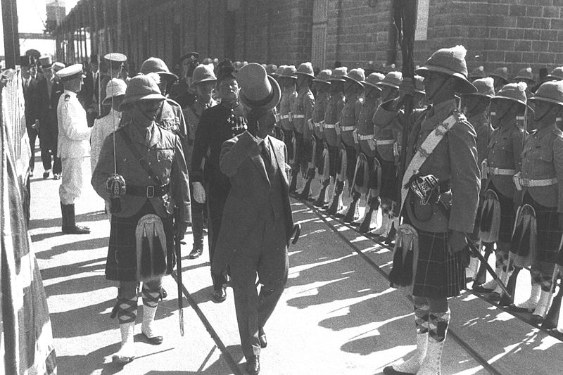 קבוצת המלחים, בת 20 איש, מאנית המלחמה „הייסטינגס“, הסתדרה על רציף הנמל ומיד נכנסה והסתדרה לעומתה פלוגת הצבא הסקוטי, החונה בחיפה ובראשה שתי תזמורות צבאיות.