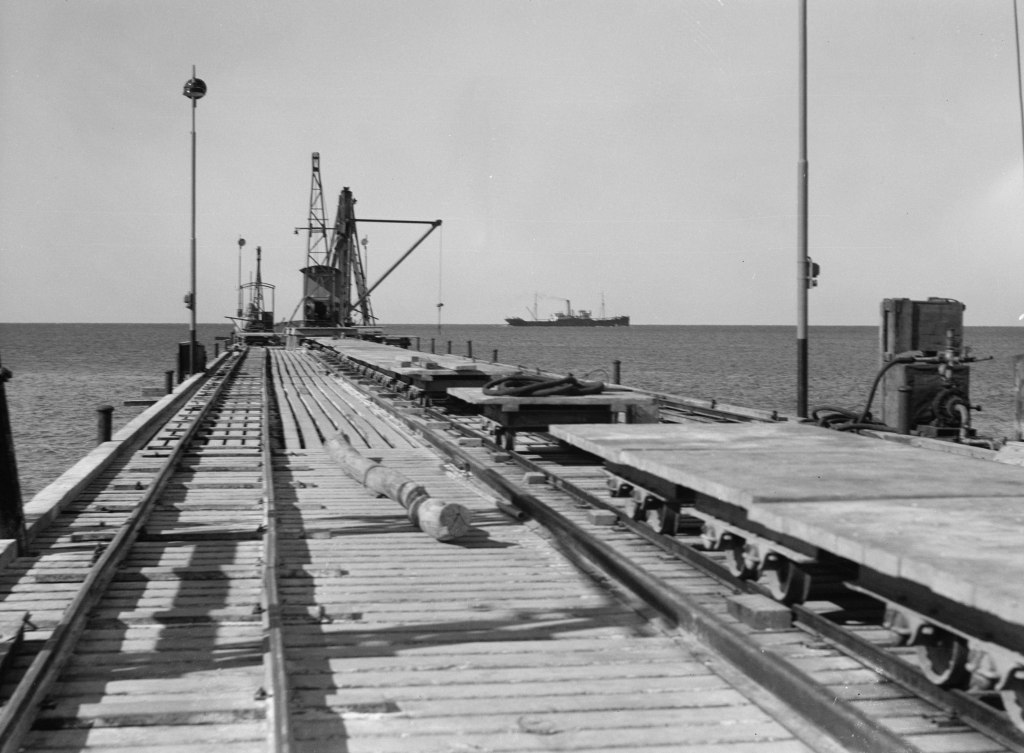 הפריקה מתנהלת כסדרה. עובדים כל שלושת המדלים (מנופים). עתה ברור שקל להכפיל את כמות המשאות הנפרקים, אילו הותאם לכך עוד שטח, שמדלים נוספים יוכלו לעמוד בו. לשון החול המוקפת קיר עץ היתה יכולה להיות מוכנה לכך בתוספת־הוצאות לא גדולה.