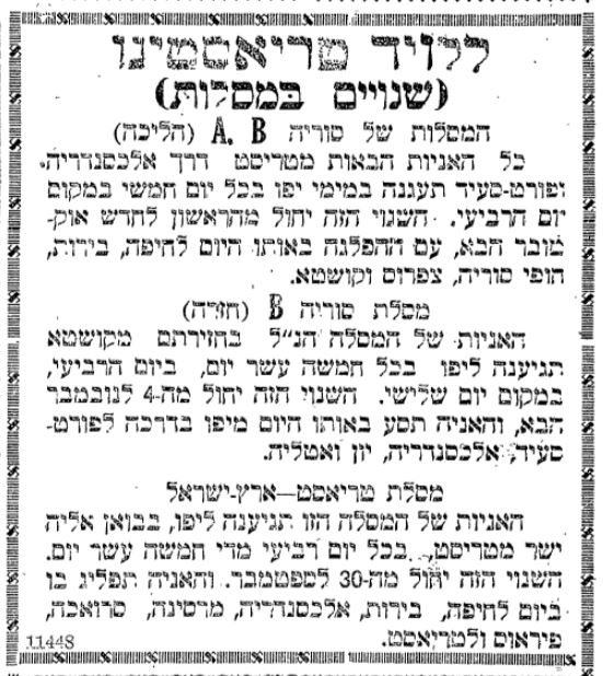 ללויד טריאסטינו (שינויים במסילות) – 10 בספטמבר 1925 . "דאר היום", שנה שביעית, גליון רפ"ג, 10 בספטמבר 1925, עמ' 1. העתק דיגיטלי באוסף עיתונות יהודית היסטורית של הספרייה הלאומית.