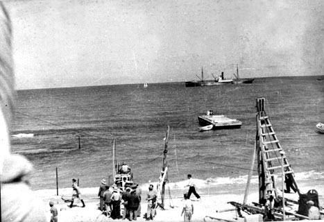 בין הבאים לחוף לפריקת המטען הראשון נראו חברי הנהלת עירית ת"א, פ. רוטנברג, ד. רמז, ב. לוקר, יהושע גורדון, א. קפלן ורבים אחרים מכל שדרות התושבים.