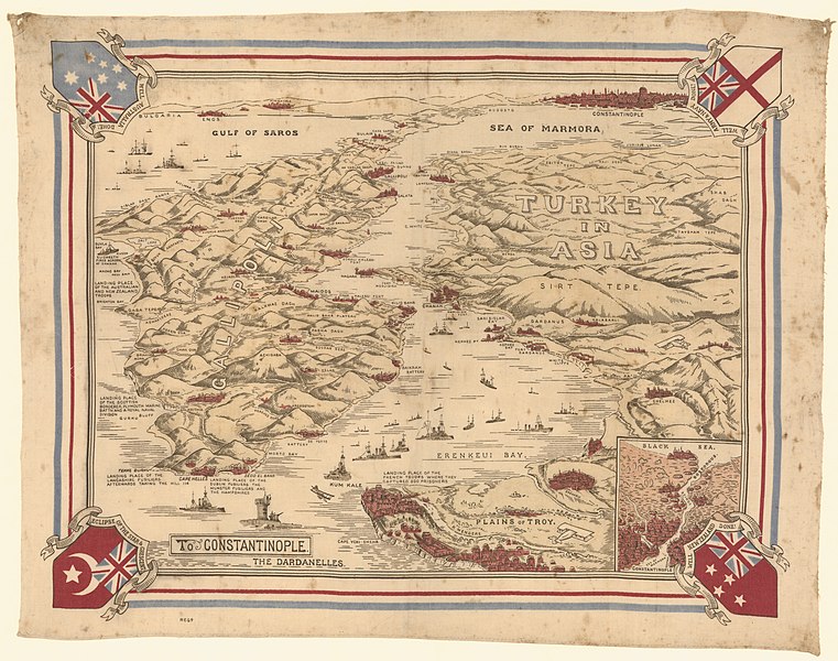 מפת טורקיה ומערכת הדרדנלים, 1915. מקור: ויקישיתוף.