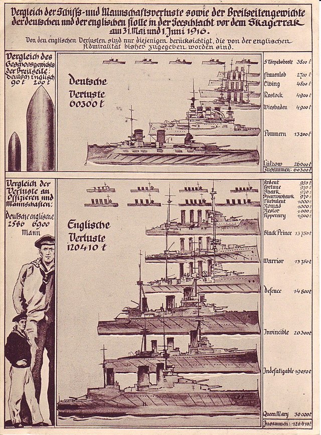 ה„פאָליטיקען“ אומר במאמר ראשי: אפילו עפ"י הידיעות שנתקבלו עד עתה ושאינן מלאות עוד ברור היא, כי מלחמת הים הזאת היתה הכי-גדולה בקורות העולם, הקרב הממשי הראשון בין דרדנויטים מודרניים ודרדנויטים-עילאים, בין אניות-שריון ואניות-מרוץ מהירות השטות כ"ט-שלשים מילין בשעה, בין מחבלות ומוקשניות, וכפי הנראה גם בהשתתפותן של תתמימיות. בלחי שום ספק השתתפו גם אניות-אויר בקרב זה. זו היתה מלחמת-ים עם כל האמצעים שעליהם דנו מקודם רק בתיאוריה.