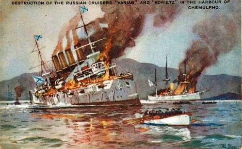 אולם היאפאנים לא הסתפקו ביום ההוא בפארט ארטהור לבד, המפקד אוריאו, הוריד בו ביום אלפים וחמש מאות איש לשעמולפא בקארעא. מפקד האניות הרוסיות „וואריאג“ ו„קאריעץ“ נדרש לצאת באניותיו את החוף, ויהי בהמאנו למלא אחרי הפקודה הזאת, נחרבו האניות כלה מאת היאפאנים, וחמש מאות איש נהרגו.